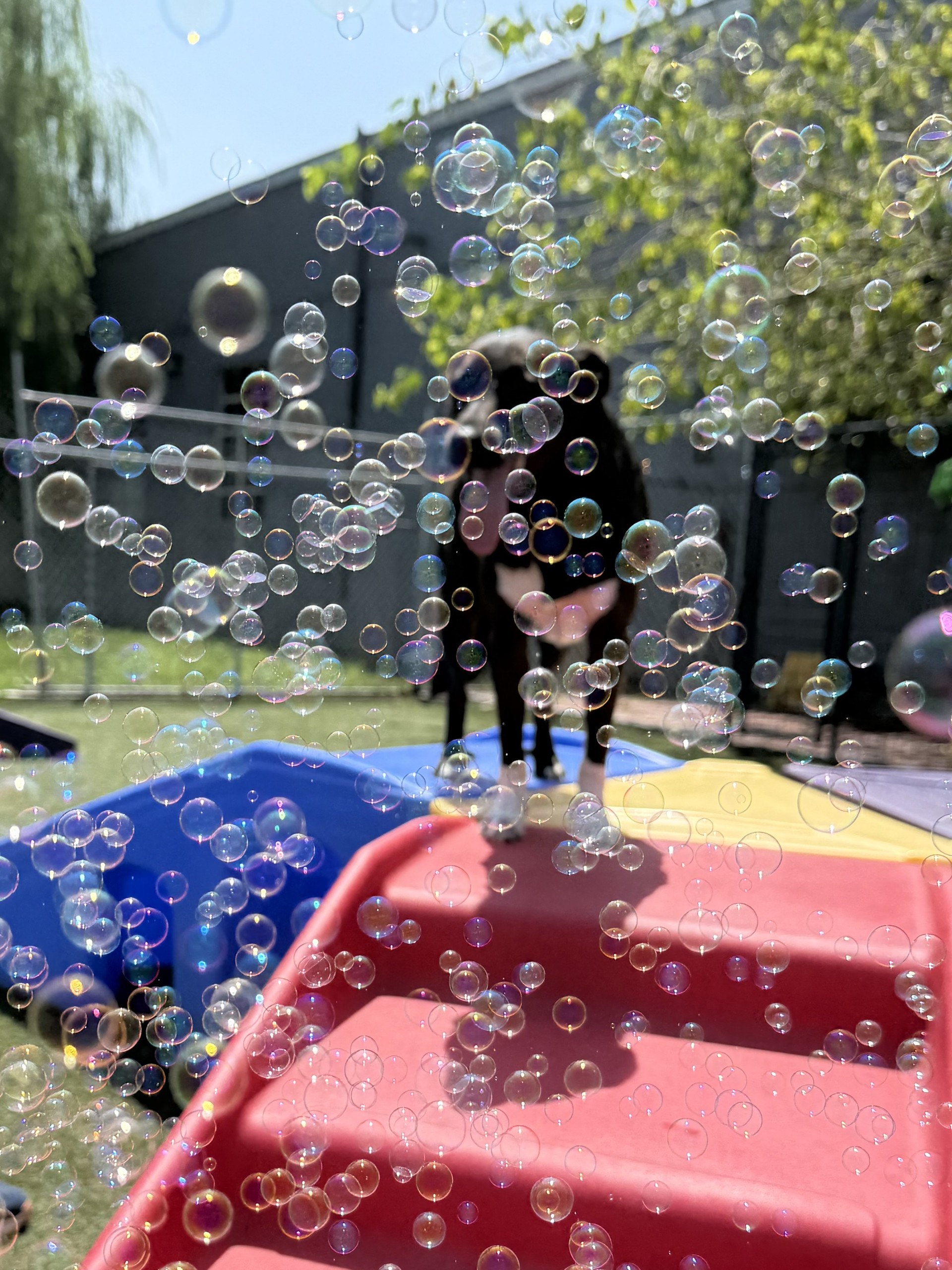 - Splash Pools – Pups love to cool off in our doggie swimming pools during the summer.